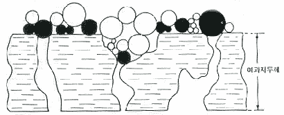 여과지에 의한 여과과정 ● 직접체 거름에 의하여 잔류된 입자들 ○ 덩어리 형성에 의하여 잔류된 입자들